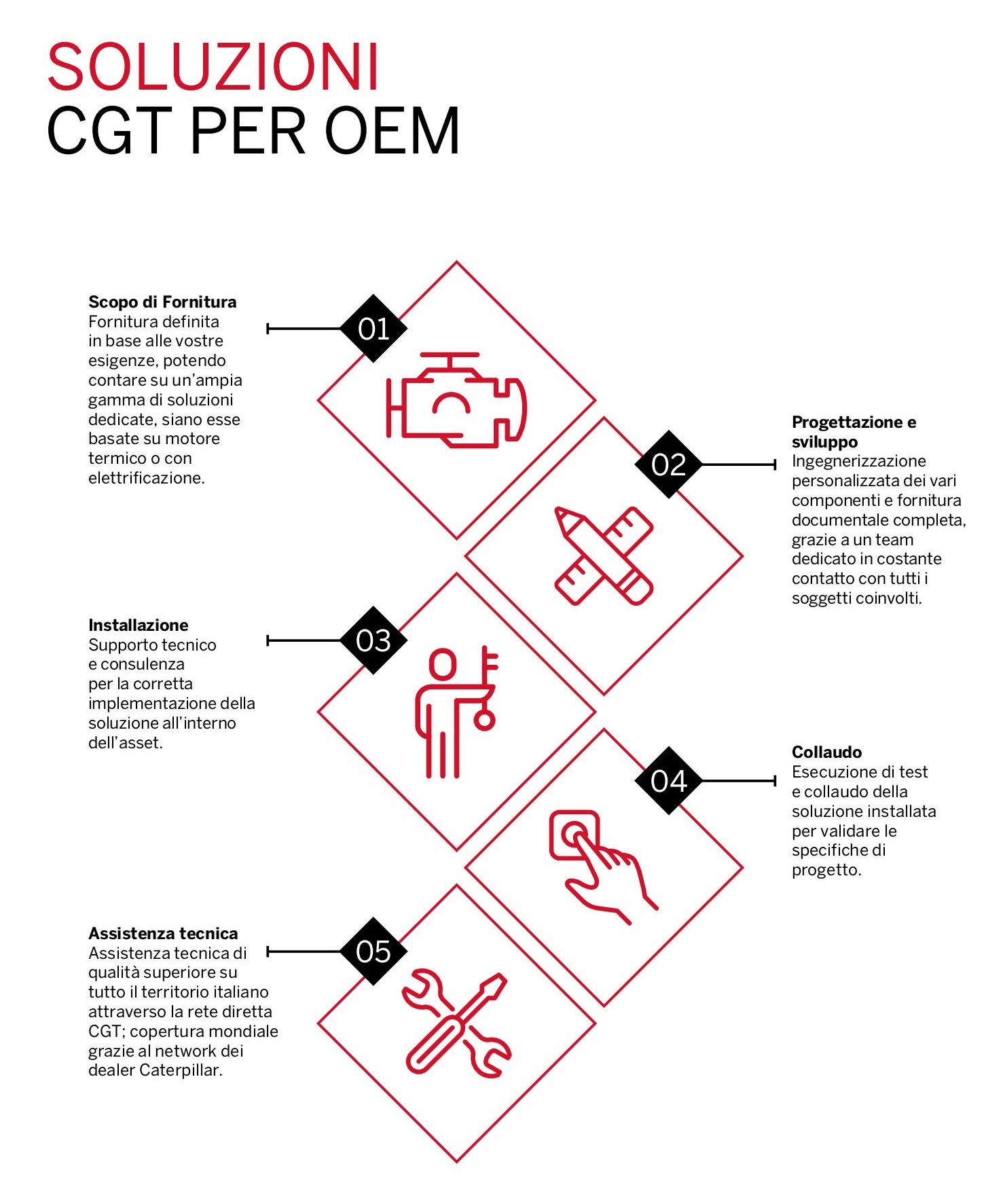 CGT dimensiona, progetta e realizza soluzioni per la generazione di potenza destinate ad applicazioni industriali, personalizzando il progetto a seconda delle necessità e garantendo elevata affidabilità e tecnologia all’avanguardia.