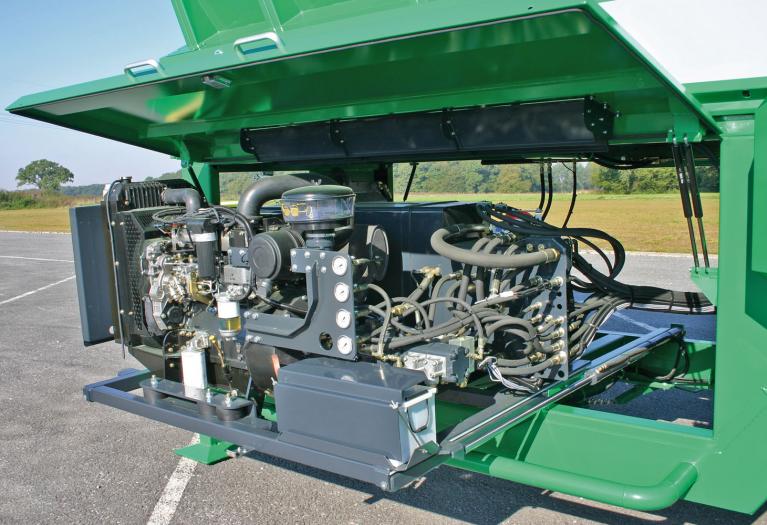 Sul MAXX E, i motori elettrici sono utilizzati al posto di quelli idraulici. Ciò consente un risparmio di energia, poiché i motori elettrici hanno un’efficienza molto maggiore rispetto ai sistemi idraulici. La potenza viene trasferita direttamente dalla rete o prodotta da un generatore diesel, se necessario.