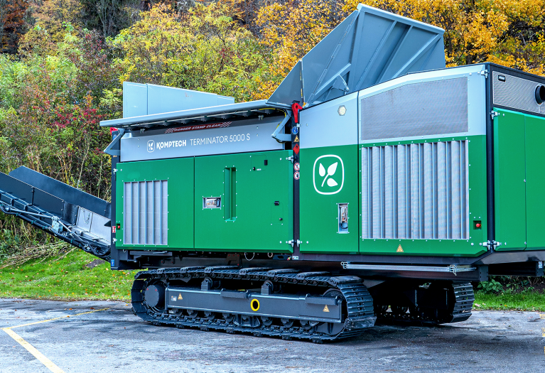 The Terminator is a slow-running, single-shaft shredder for all types of waste. Robust teeth on the shredding drum and the opposing counter comb give coarse pre-crushing to a defined shredding size. The continuous cutting gap adjustment allows precise setting of the particle size for subsequent process steps. The hydraulic drive with load-dependent speed control ensures maximum utilization of the engine output. The hook lift platform, 3-axle chassis and steel tracks with hydraulic drive options provide excellent mobility.