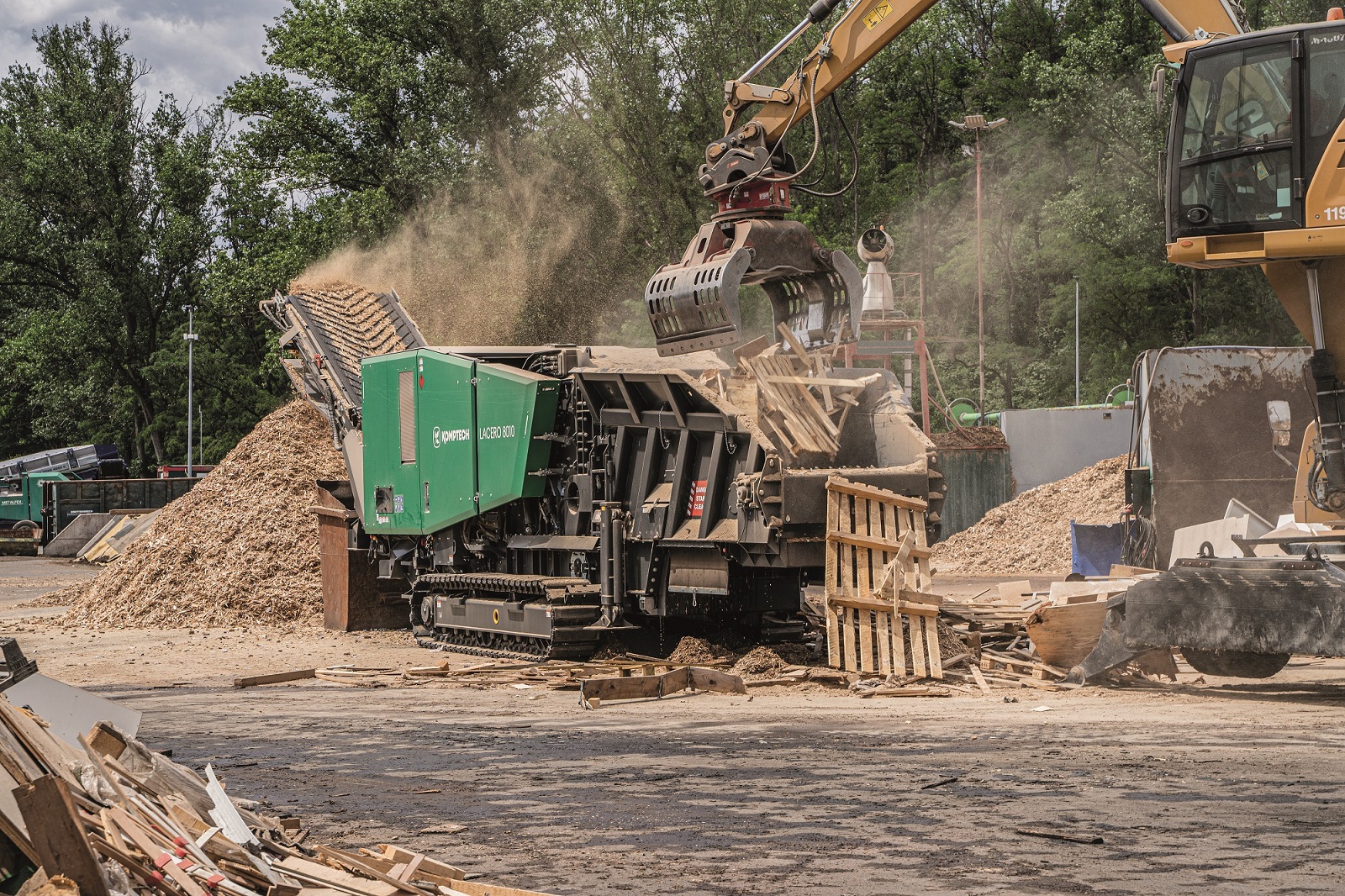 "The Lacero 8010 expands the range of products for wood biomass processing. This high-speed shredder has a large feeding capacity and a power of 812 HP, sufficient for a productivity of up to 400 cubic meters per hour. For operators who have high demands in terms of productivity and material quality, the Lacero is one of the most efficient machines for processing virtually all materials used in the landscaping sector."