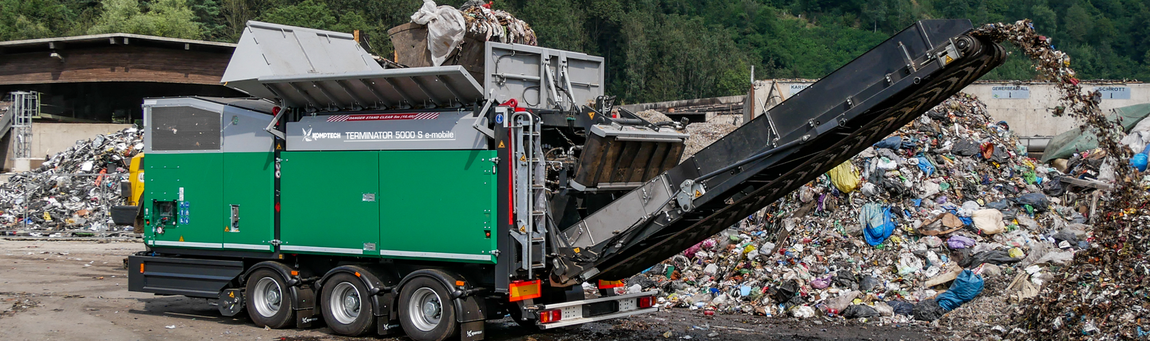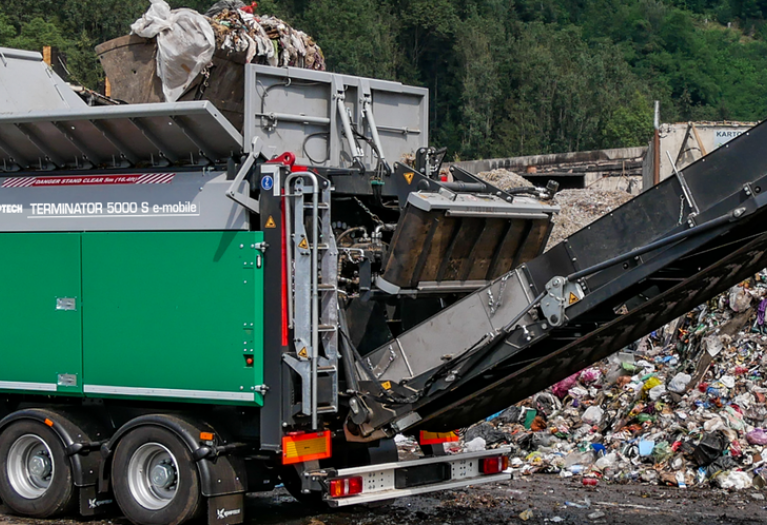 The Terminator, as a slow single shaft shredder, can be used for all types of waste. The rotor / counter comb combination allows you to range from a coarse crushing to a fine crushing. The continuous adjustment of the cutting space allows to adapt the size of the piece to the next process. A hydraulic transmission, with adjustment of the number of revolutions according to the load, ensures the optimization of engine power on mobile models. (Available only in trailer or roll-off version)