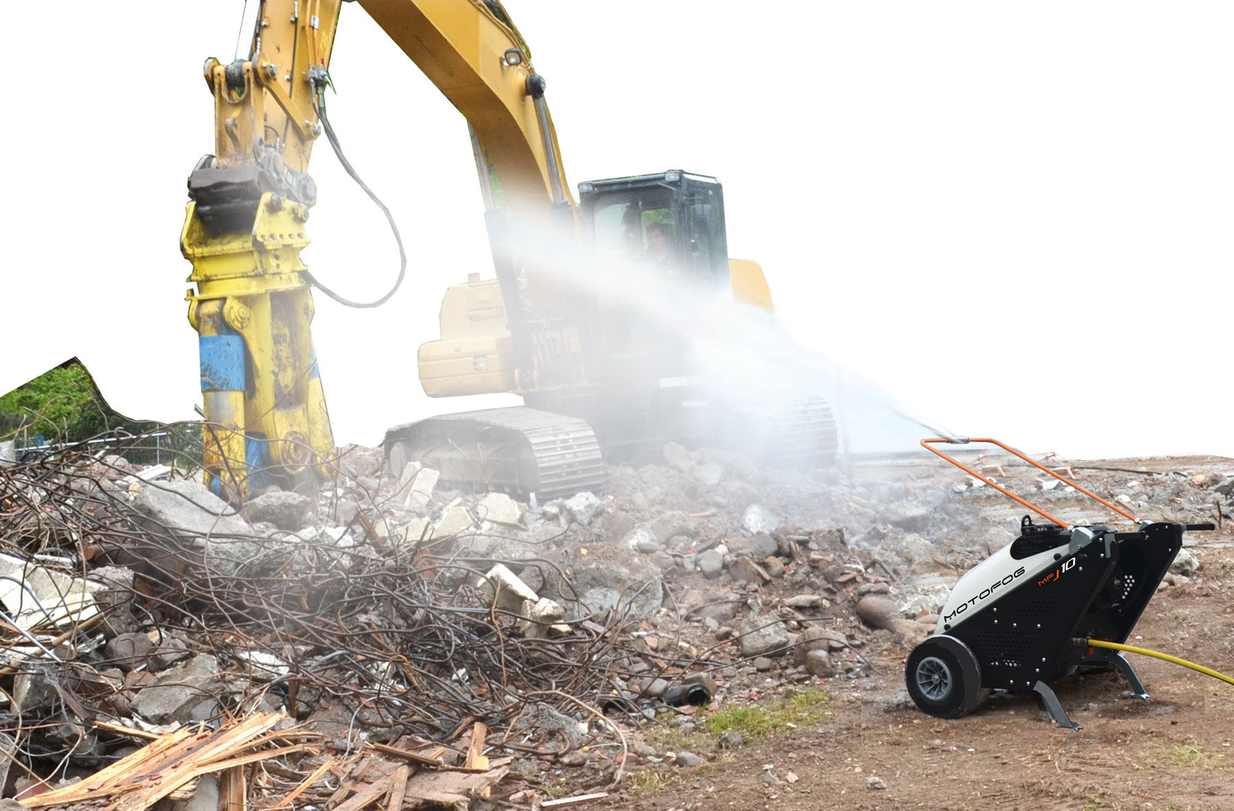 L’esigenza di avere una macchina per l’abbattimento versatile,efficiente ed autonoma ha portato allo sviluppo di Motofog MFJ. MFJ si rivolge alle imprese che operano nell’edilizia, nelle demolizioni ed in qualsiasi settore che nelle proprie lavorazioni ha l’esigenza di eliminare polveri, odori e fumi. Con MFJ basta una alimentazione idrica e si è subito operativi. A costi contenuti in quanto non servono generatori di corrente e il tutto con ingombri e pesi estremamente ridotti. MFJ è un abbattitore mobile a getto nebulizzato con a bordo un motore a scoppio che aziona la pompa ad alta pressione. MFJ con Dual Jet è estremamente flessibile e si adatta alle esigenze degli operatori. Gli ugelli montati consentono, con una semplice manovra, dei getti che privilegiano la lunghezza della gittata o l’ampiezza a seconda delle esigenze operative.