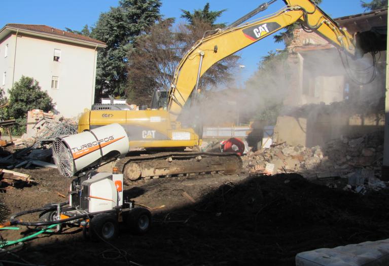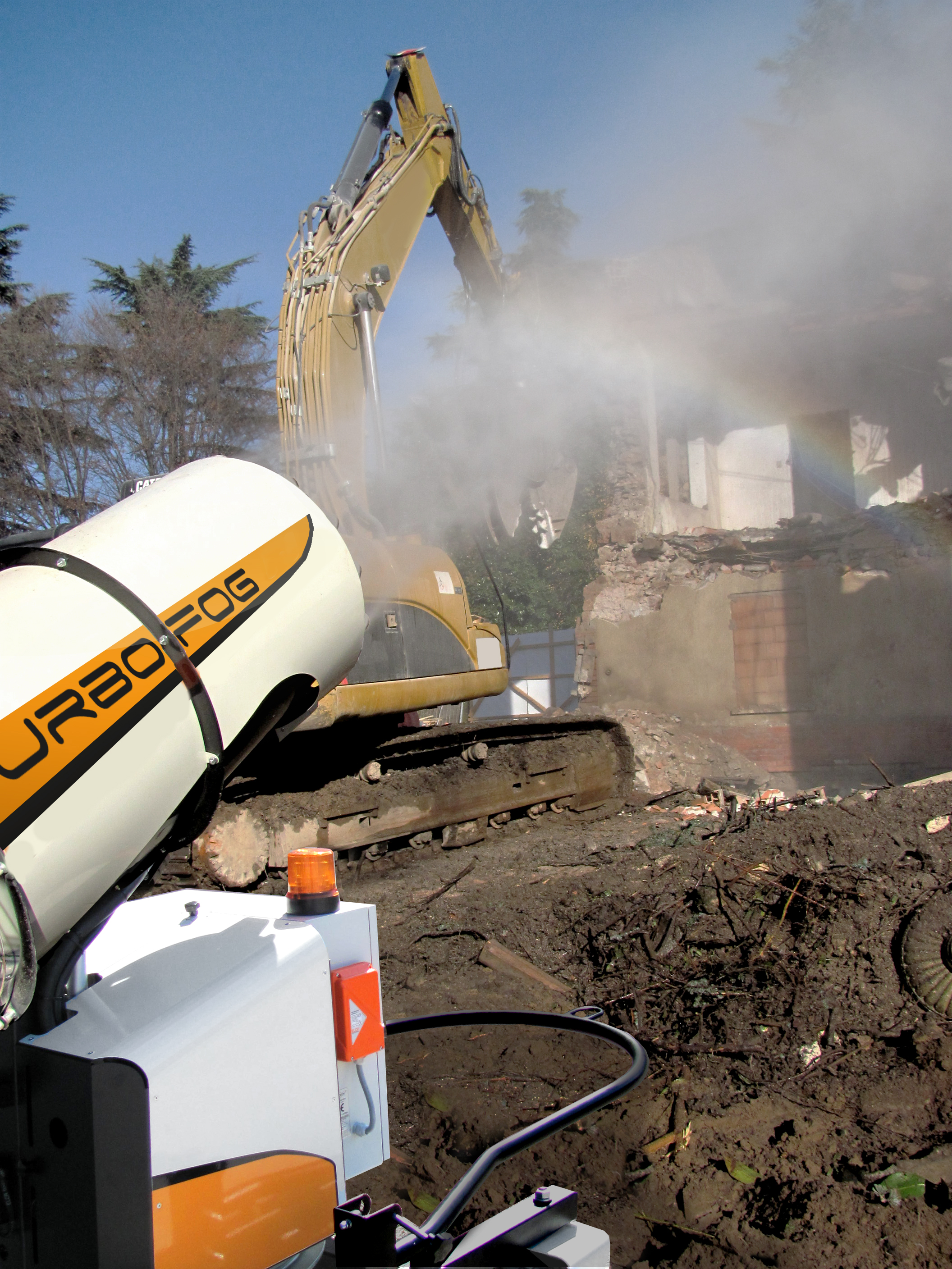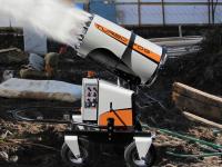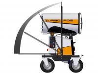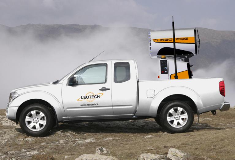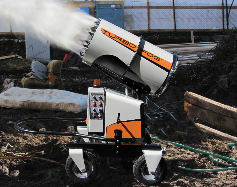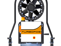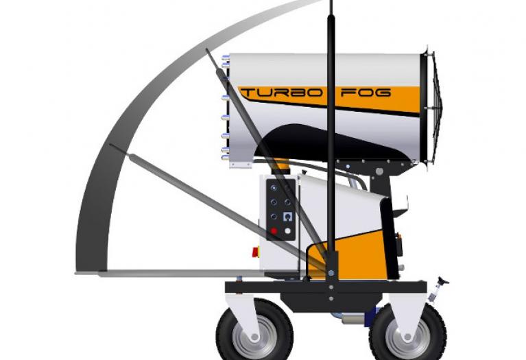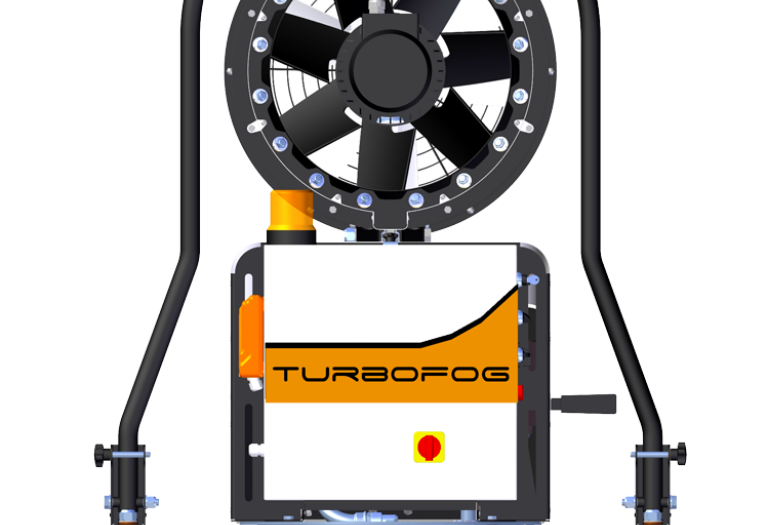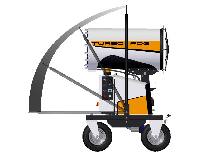Il design compatto e accattivante di TURBOFOG è studiato espressamente per il settore dell’abbattimento polveri e odori. Il telaio, dotato di quattro ruote, due delle quali girevoli, e di timone reversibile che funge anche da gancio di sollevamento, permette a TURBOFOG di essere spostato e posizionato agevolmente anche sui terreni più accidentati ed allo stesso tempo di essere estremamente stabile. La stabilizzazione sicura e rapida della macchina, anche in pendenza, è resa possibile tramite freni agenti sulle ruote posteriori. TURBOFOG è dotato inoltre di brandeggio ed alzo elettrico. La concezione intelligente della macchina garantisce consumi elettrici molto ridotti uniti a prestazioni superiori alla media. Con l’opzione radiocomando tutte le funzioni della macchina sono controllate a distanza.