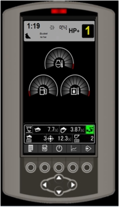 Permette di gestire sino a 20 attrezzature, con regolazioni indipendenti di portata e pressione dell'impianto idraulico: il tutto selezionabile semplicemente dall'operatore attraverso il joystick in cabina.
