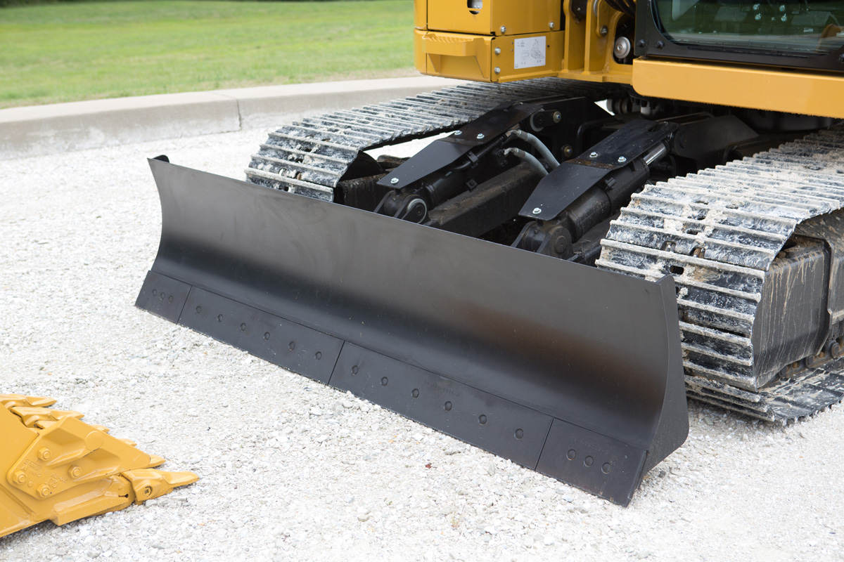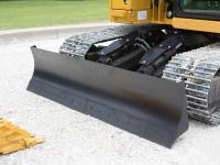 La lama frontale, larga 2500mm e con il tagliente imbullonato reversibile, consente di eseguite piccoli lavori di reinterro, spianatura e pulizia dell'area di lavoro.