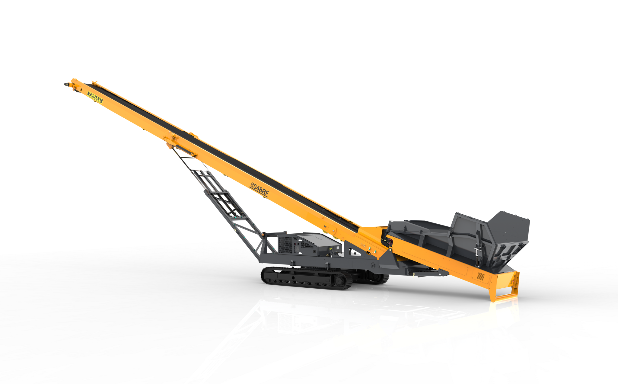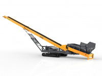 L'8048RF è una tramoggia di messa a cumulo. E' composto da una grande tramoggia di alimentazione che trasferisce il materiale su un nastro trasportatore di 80 piedi. Progettato per consentire agli operatori di accumulare/trasferire il materiale in modo rapido ed efficiente.