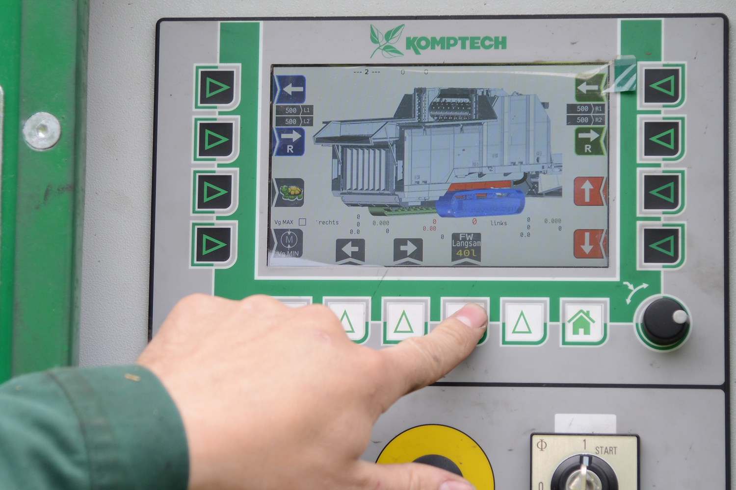 Il pannello di controllo sulla macchina ha un display a colori che mostra con chiarezza tutte le funzioni e lo stato operativo. Grafici colorati aiutano gli utilizzatori ad individuare il giusto comando per ogni funzione. Il telecomando, a richiesta, è in grado di controllare ogni funzione della macchina.