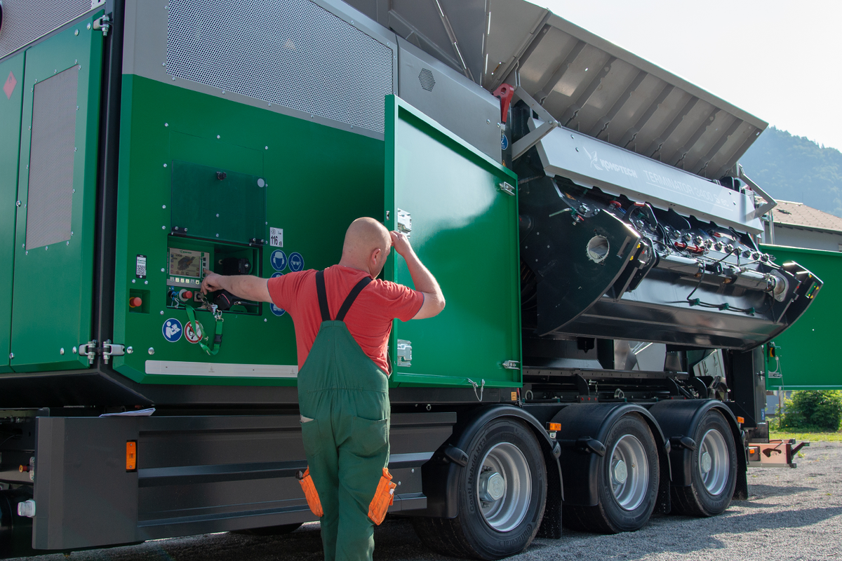 Il Terminator XTRON, come trituratore lento monoalbero, può essere utilizzato per tutti i tipi di rifiuti. La combinazione rotore/contropettine, consente di spaziare da una frantumazione grossolana ad una triturazione fine. La regolazione continua dello spazio di taglio permette di adattare le dimensioni della pezzatura al processo successivo. Una trasmissione idraulica, con regolazione del numero di giri a seconda del carico, assicura l’ottimizzazione della potenza del motore sui modelli mobili. Il nuovissimo rotore V, la possibilità di dotare il trituratore di barre di post triturazione removibili ed il nuovo sistema di controllo, aumentano ancora di più la gamma di materiali che XTRON è in grado di lavorare. L'accresciuta versatilità è accompagnata da un significativo aumento della coppia di triturazione.