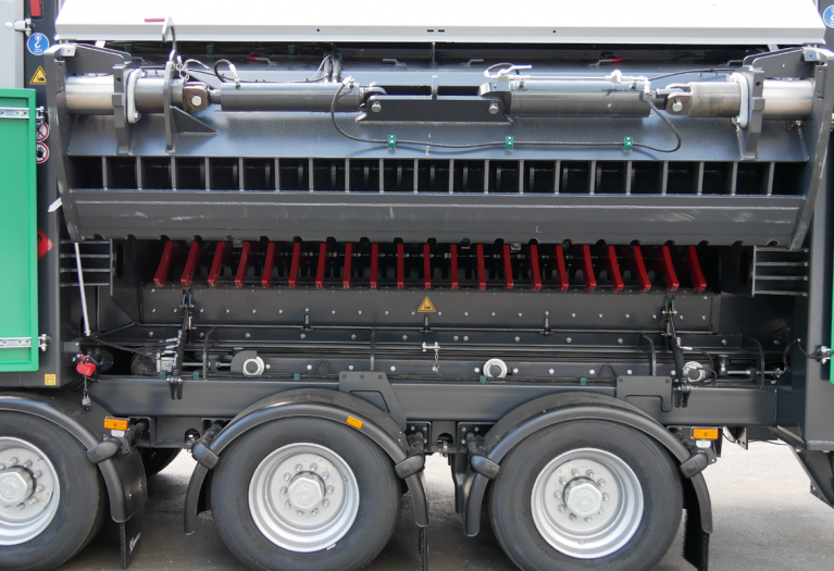 Il contropettine a comando idraulico e permette di variare in modo continuo la pezzatura del materiale in uscita, aumentando o diminuendo lo spazio tra la contropettine e rotore, tale spazio può essere impostato dal quadro di comando o da telecomando anche durante la fase di lavoro. É possibile installare delle barre di post triturazione nella parte inferiore del rotore, questo optional comprende 17 barre che permettono di ottenere pezzature ancora più fini e soprattutto di dimensioni sempre costanti. In pochi minuti le barre possono essere smontate e rimontate.