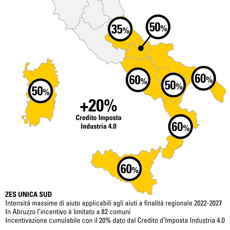 Il Credito d’Imposta ZES ha l’obiettivo è di sostenere investimenti finalizzati alla crescita e al consolidamento economico delle aree del Sud Italia per renderle più idonee per lo sviluppo e la crescita dimensionale del sistema produttivo. Permette alle aziende beneficiarie di godere di una incentivazione fiscale per l’acquisto di beni strumentali nuovi, e non solo, che può arrivare in alcune regioni fino al 60% del valore del bene ed è cumulabile anche con altre misure agevolative come il Credito d’Imposta 4.0. Questo può portare a un risparmio sull’acquisto del bene fino al 100% grazie alla somma dei differenti vantaggi fiscali disponibili (ammortamento standard + Credito d’Imposta 4.0 + Credito d’Imposta ZES).